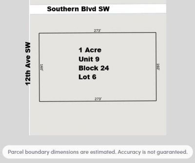 One Acre Corner Lot 12th St & Southern Blvd!!! Electric Power on Lot. Cash Only - No Payments. The best lot on Southern Blvd. Owner has several other lower priced lots in this immediate Southern Blvd area close by. Manufactured Homes OK! Build your dream home here. Paved road with Electricity on Lot! Owner has no information on access to utilities.