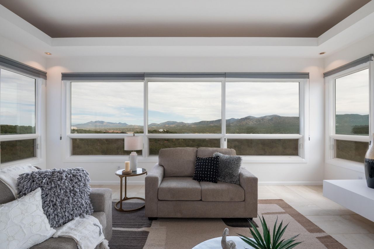 A rare opportunity awaits in Paako--an exclusive retreat where luxury, privacy, and mountain serenity converge. Home showcases panoramic views of the San Pedro, Ortiz and Sangre de Cristo mountains framed by spacious windows and open floor plan perfectly sited on 3+ acres. Every upgrade reflects meticulous care and lasting quality: Brazilian granite and cherry kitchen, ceramic tile flooring, Navien hydronic tankless system, professionally engineered gutter drainage system, curated landscaping including gated drive and fruit trees. Architect-designed addition has 20x30' artist's studio with separate entrance and private deck; repurpose for multigenerational living, second primary or family room. Homes of this caliber are seldom offered--an exceptional experience best appreciated in person.